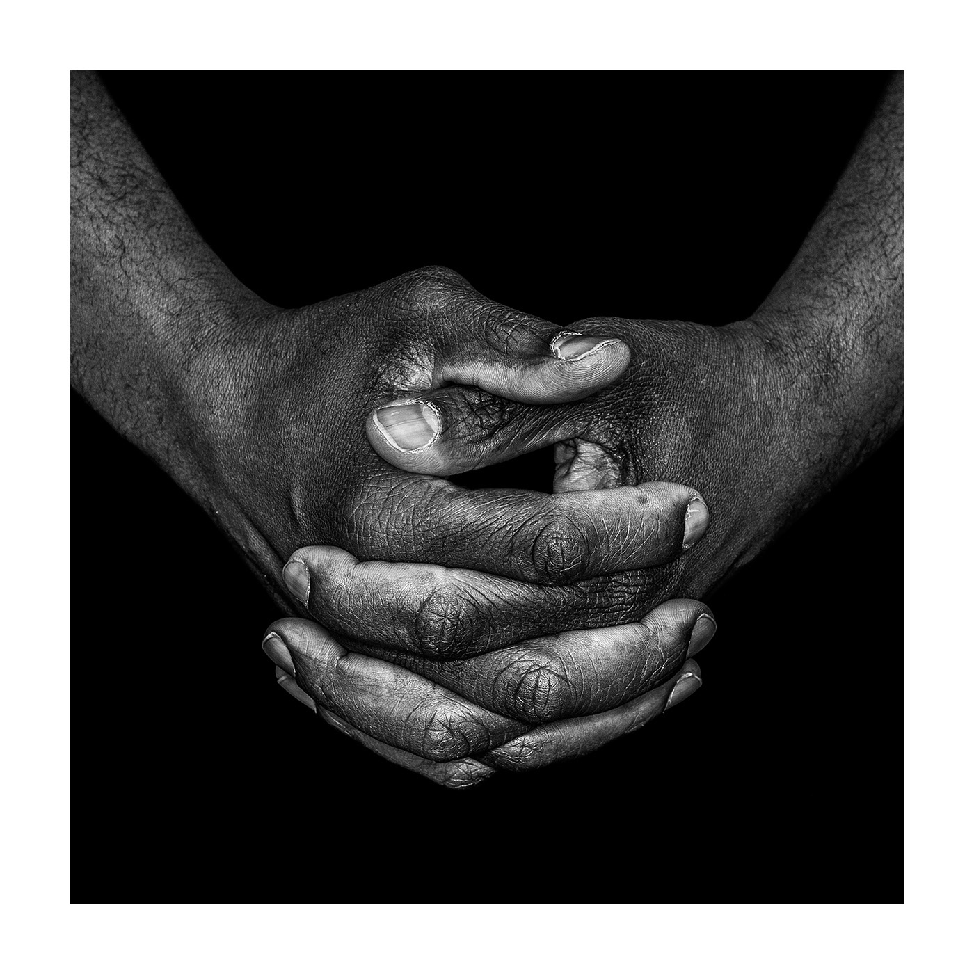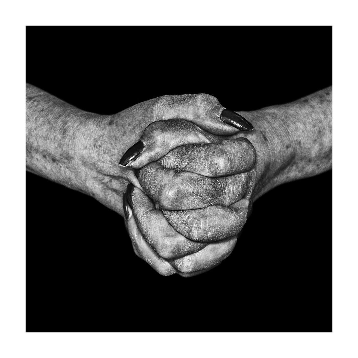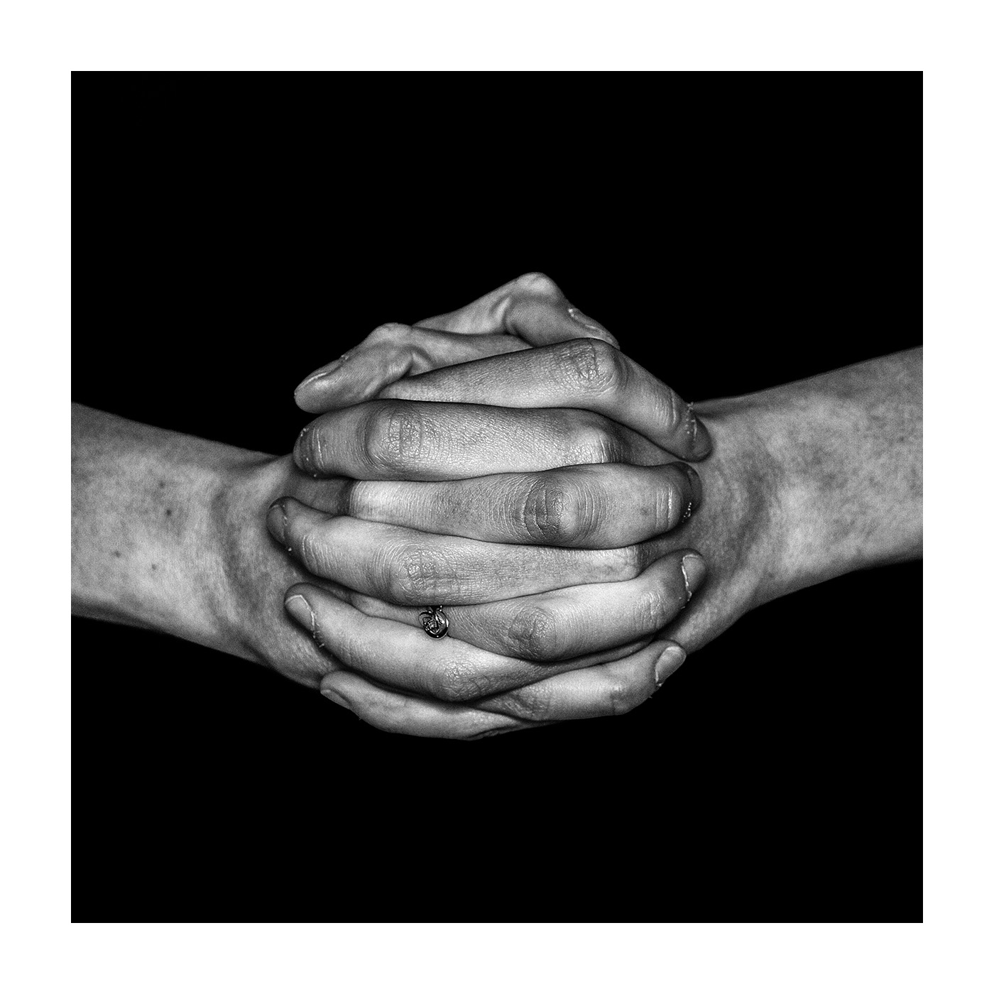 Hands in the photographs are in position which is characteristic for both prayer and passivity, which in my view depicts God’s relation to the human kind.